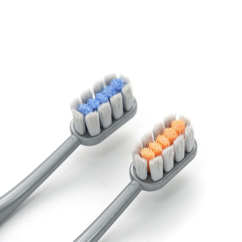 Hem / Produkter / Tandborste / Vuxen tandborste / PP/TPE Crescent Moon Handtag Ultrafint mjukt PBT-borst Vuxen djuprengörande tandborste